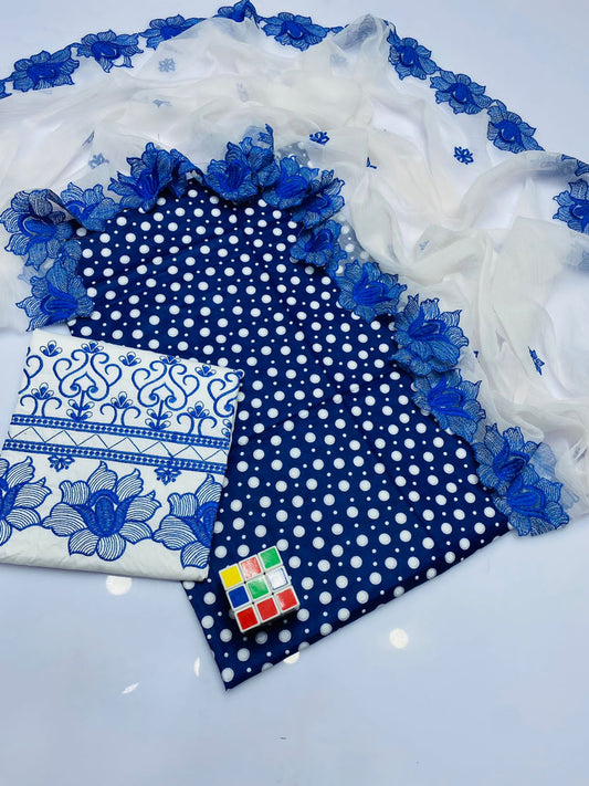 3pc Lawn Gotta Work Jall Dress (Tie & Dye Dupatta) Navyblue